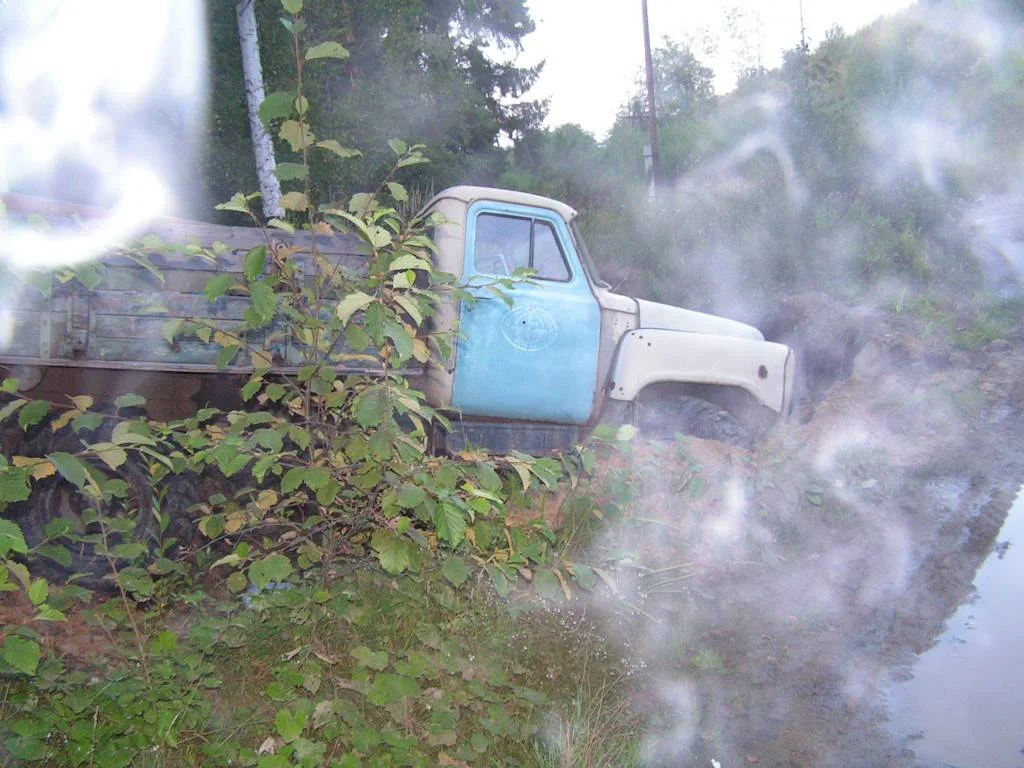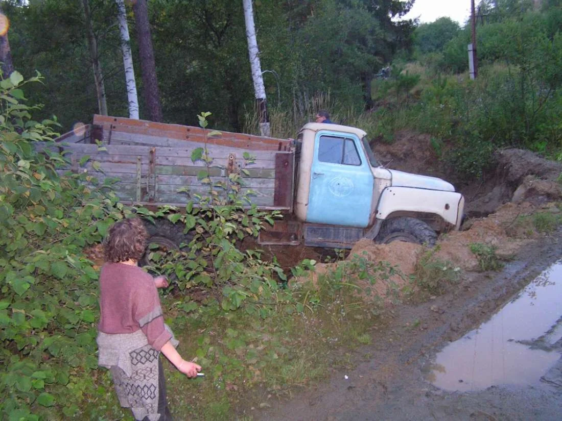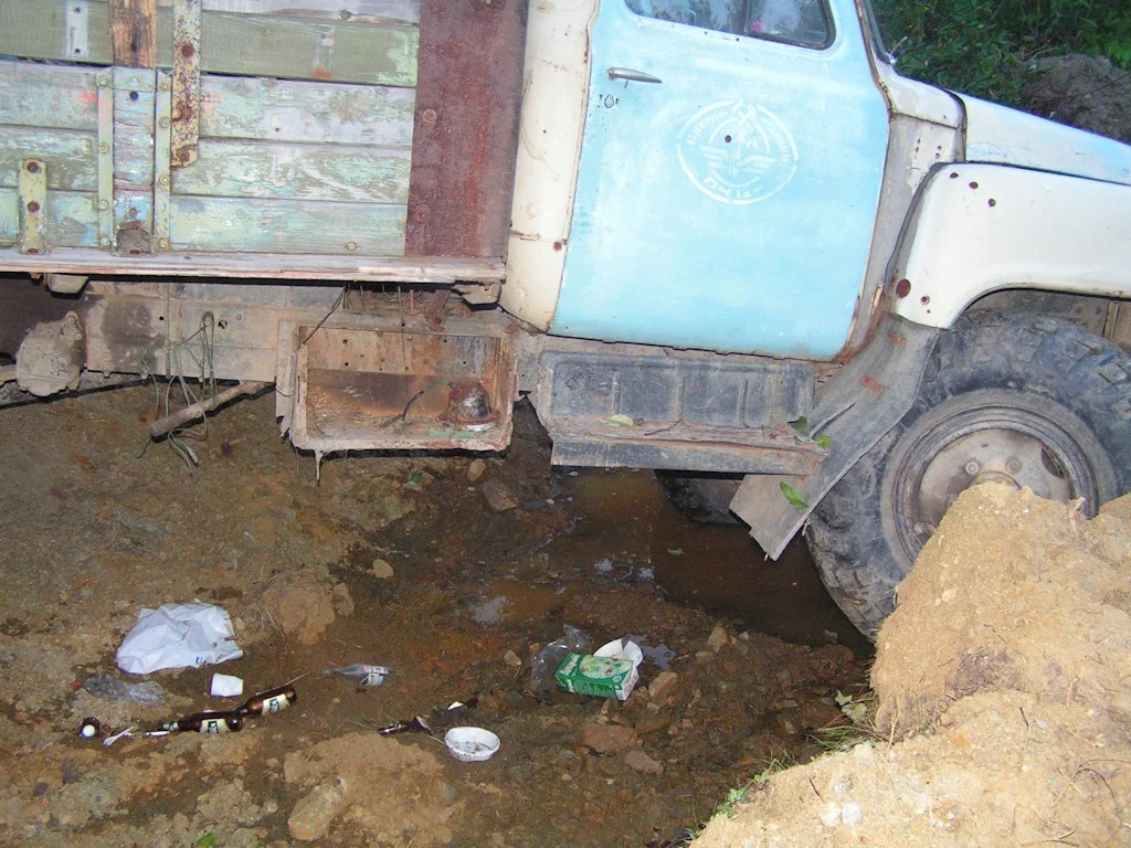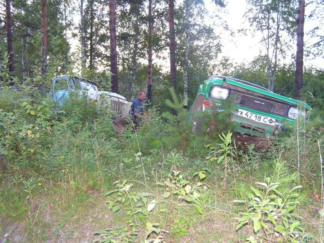 на моей коллектор с глушителем сорвали...чувак давай меня стаскивать с пня...сам залетел на пень...в итоге у же по взрослому пригнали полноприводной газончик (на фото видно ехали прямо как на танке тип внедорожник) и его в котлован засадили)))Тоже весело убили машину)