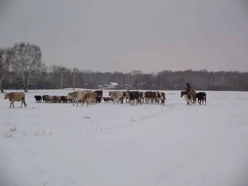 по-моему тут травы нет!!! или коровок на свежий снег порезвиться?