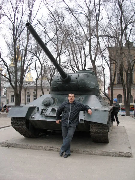 Т-34,а второй какой то английский с первой мировой войны.Киев наверное.