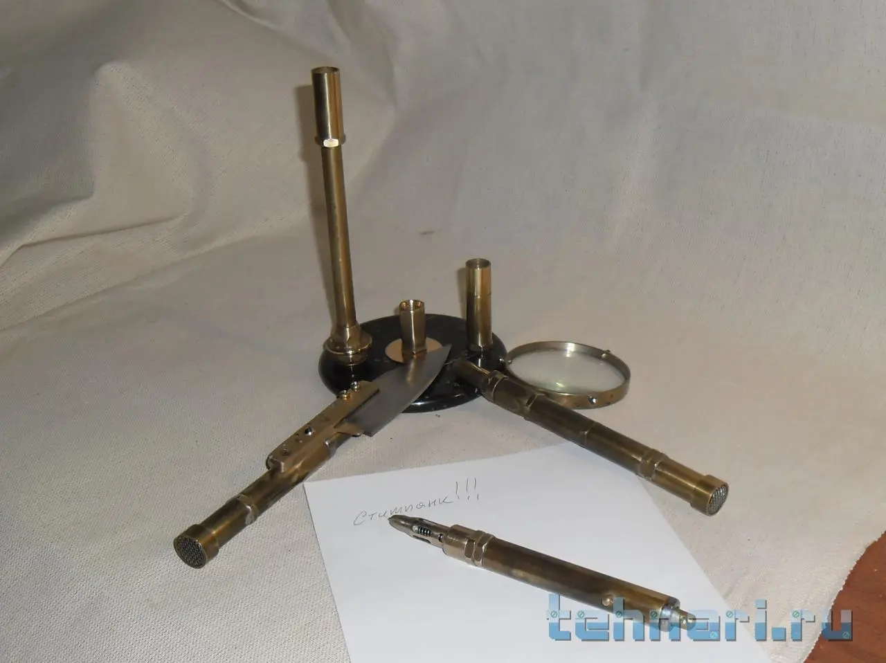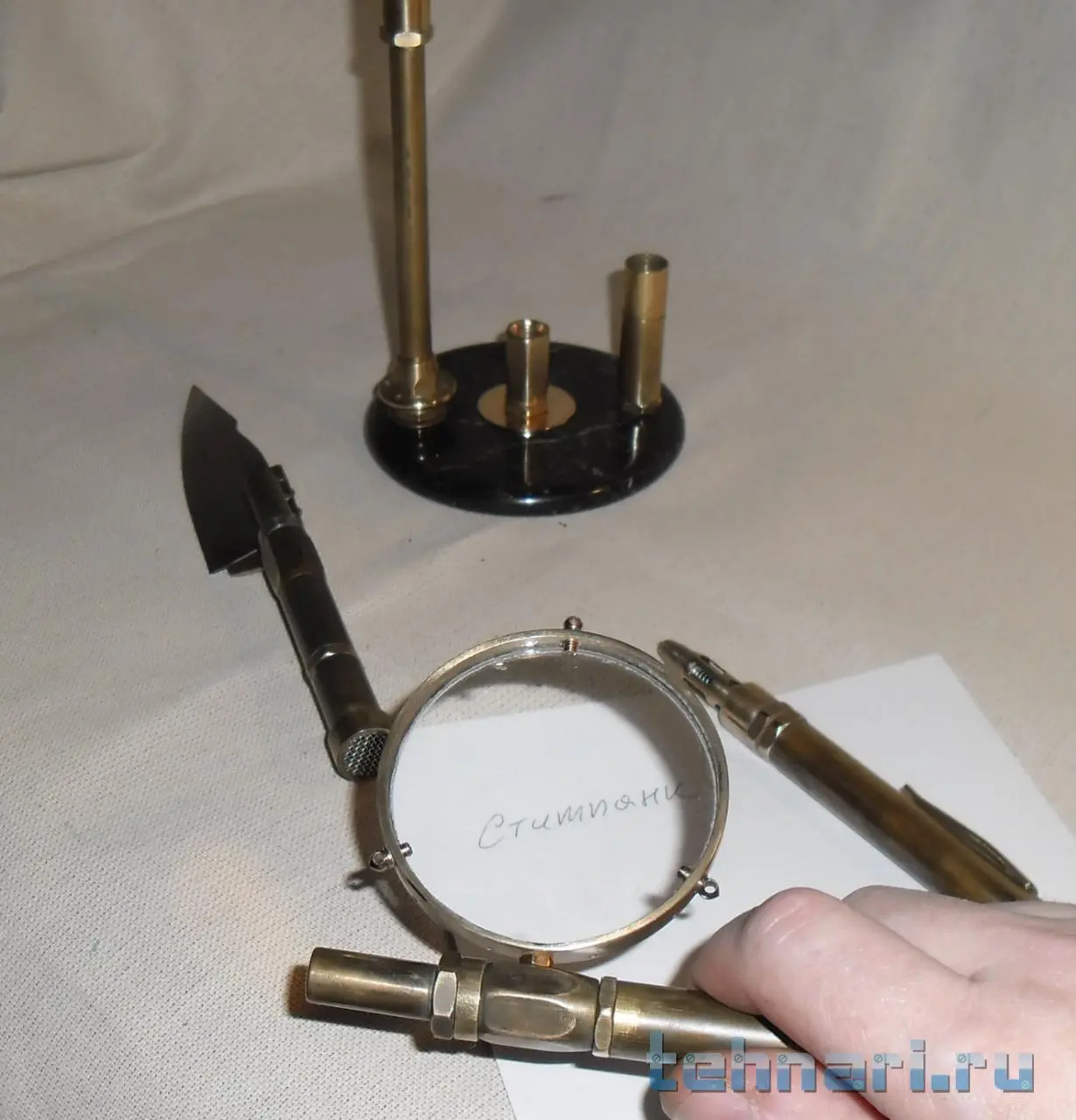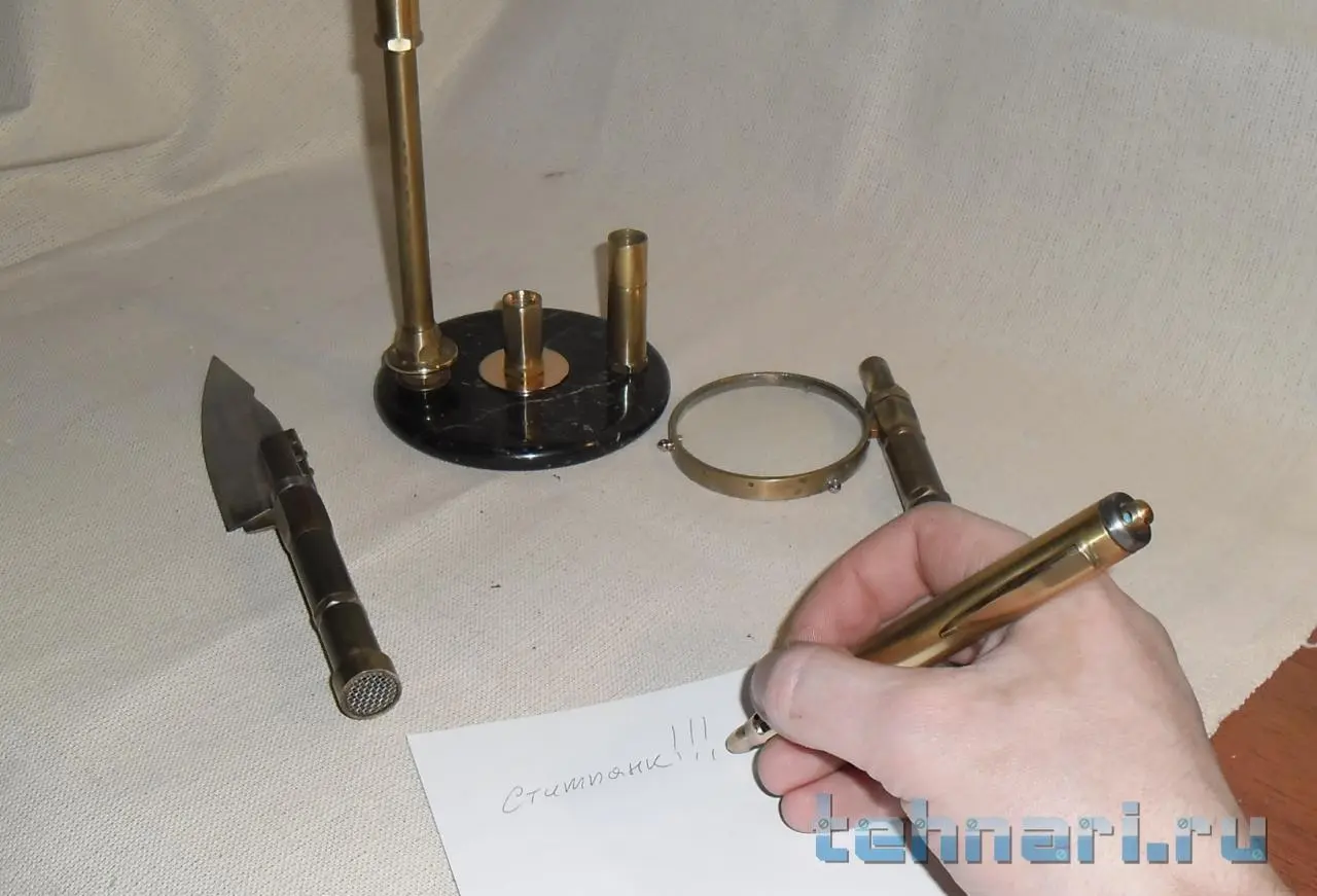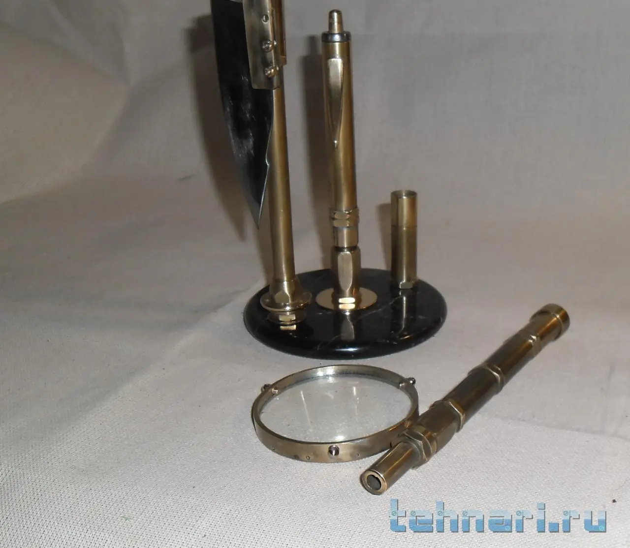 Очередной настольный набор, из трех предметов. Нож, ручка и лупа. Набор делался на заказ к одной из настольных ламп Лампа тренога. / Наши пользователи / Работы пользователей Стимпанкера / Коллективные блоги / Steampunker.ru - сеть для любителей steampunk'а .