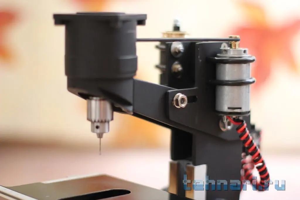 При таком соотношении шкивов и таком двигателе, гарантированно будешь жечь сверла при сверлении стеклотекстолита. Кончик посинеет однозначно, потом или выбрасывай сверло или обламывай синьку и затачивай по новой. Если кончик посинеет, это часто бывает при интенсивном трении :))) ты будешь не сверлить а продавливать (прожигать) дырдочки.
