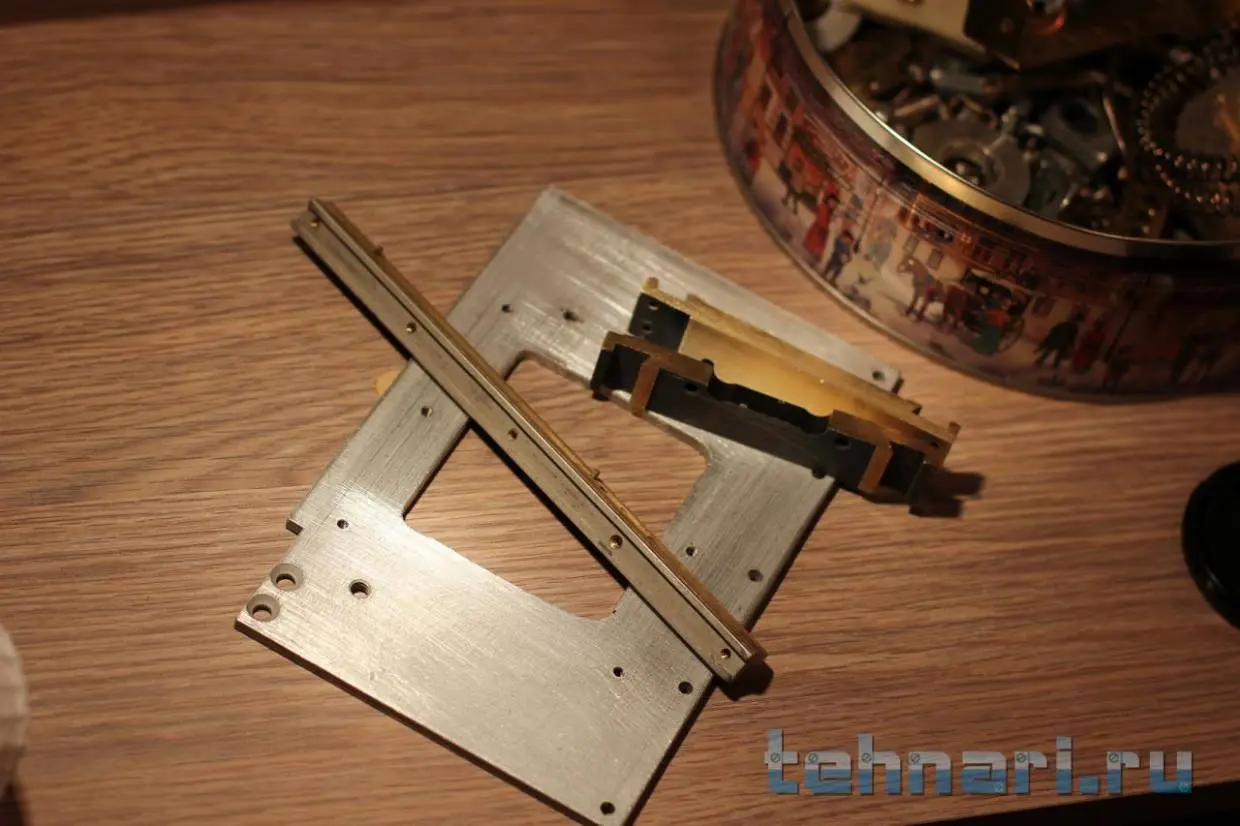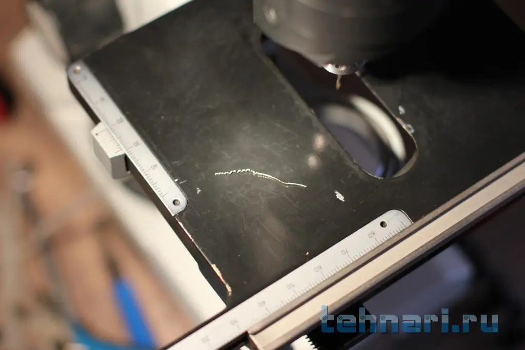Потихоньку делаю тиски для заготовок, если получится фрезеровать мелочь, то пригодится. Донором послужил столик от подобного микроскопа. От него направляйки и распиленная ответная часть, она же и послужит губками тисков. Основание из дюраля.