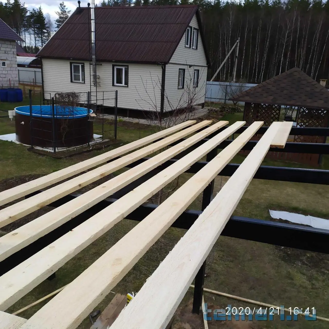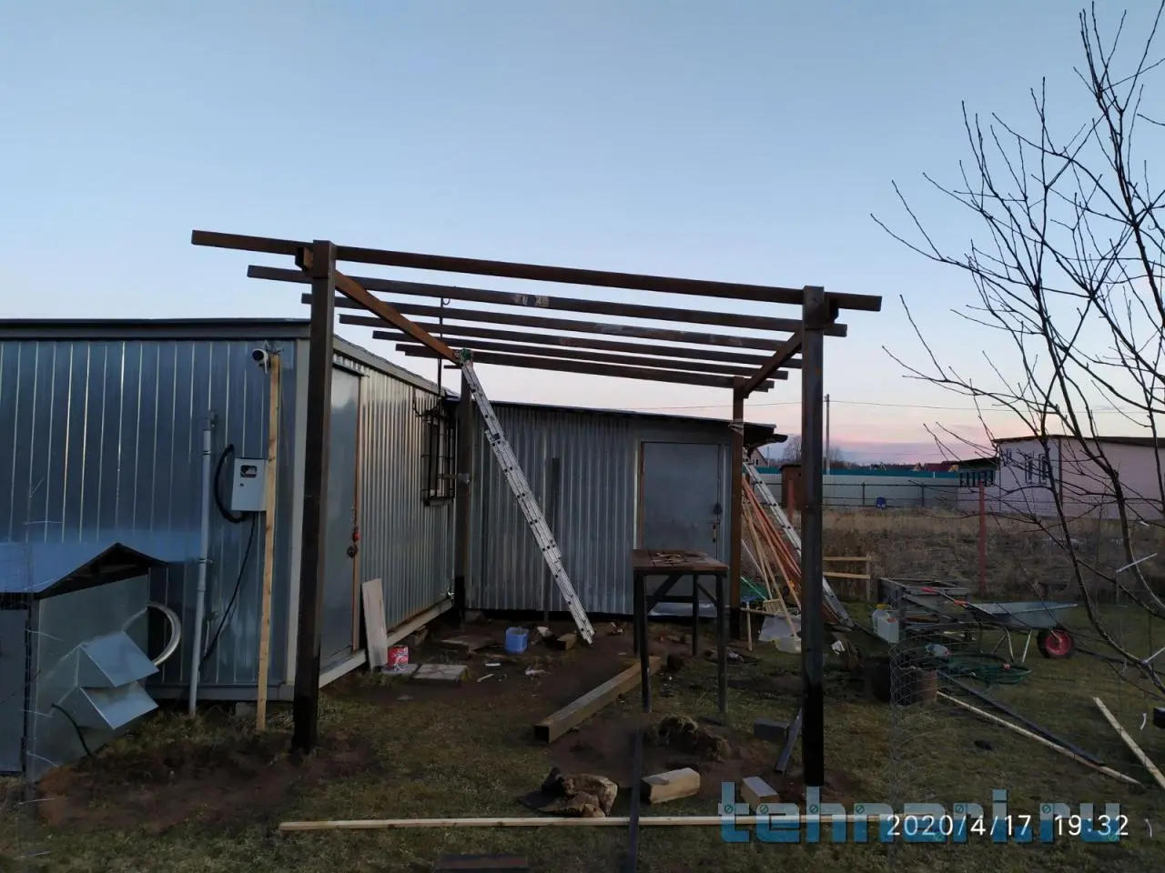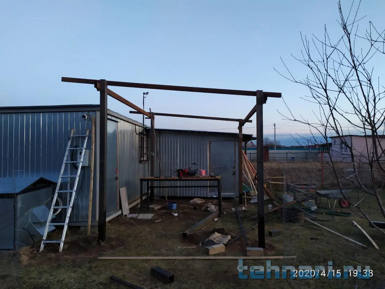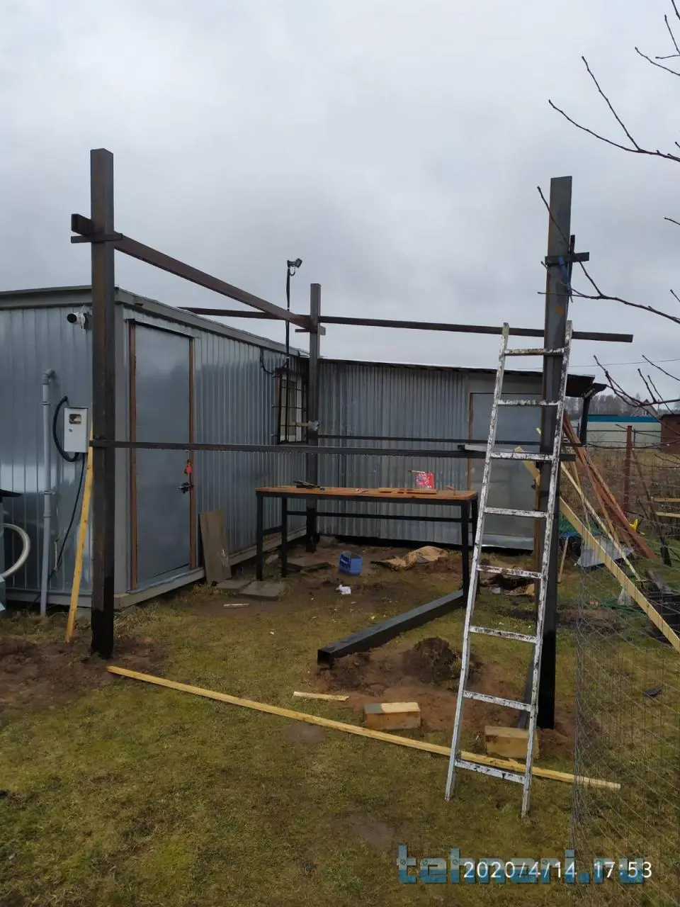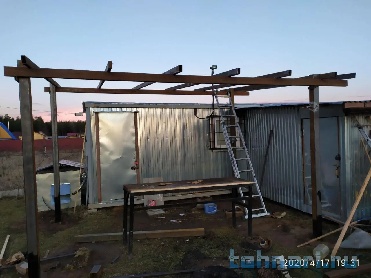 Сделал навес возле мастерской. чтобы сварочный верстак под крышей оказался