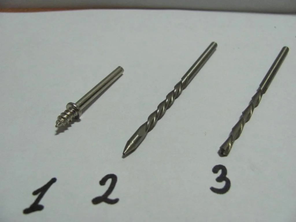 На третьем под цифрой один насадка для крепления полировальных кругов. Две остальные - фрезы для расширения отверстий и прорезки пазов. Обороты зависят от материала. Под номером три - только для обработки дерева и пластика.