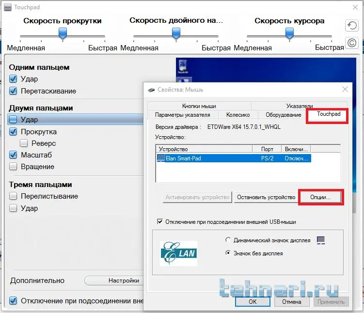 Вообем изначально я скачивал с сайта производитля драйвер ETD8.0.5.3_ps2drv_WHQL. И настроек в "несколько пальцев" небыло вообще.( как на первом скриншоте).