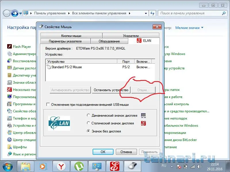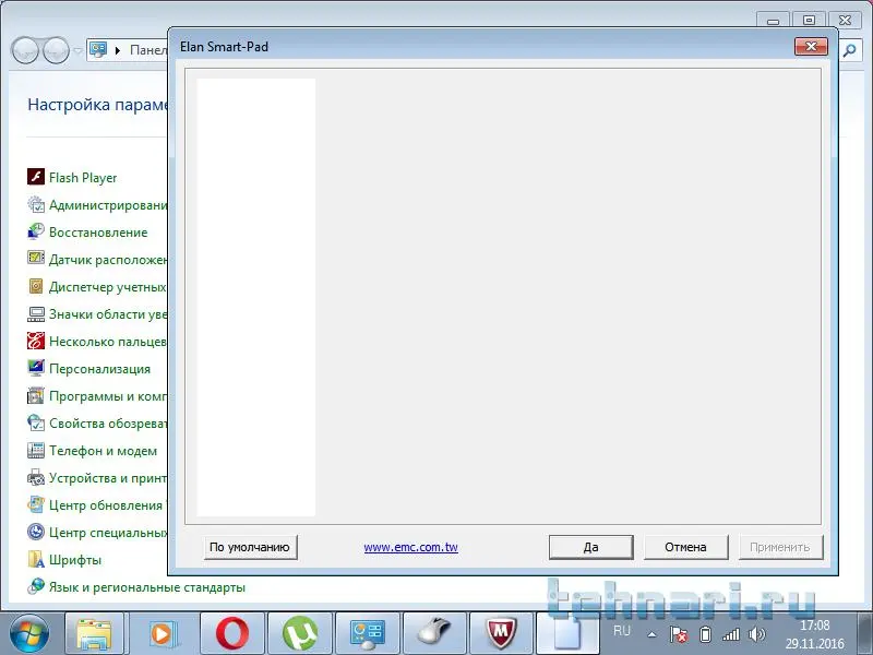 После установки windows7 установил драйвер для тачпада последней версии. Но когда захожу в настройки "несколько пальцев" там пусто.