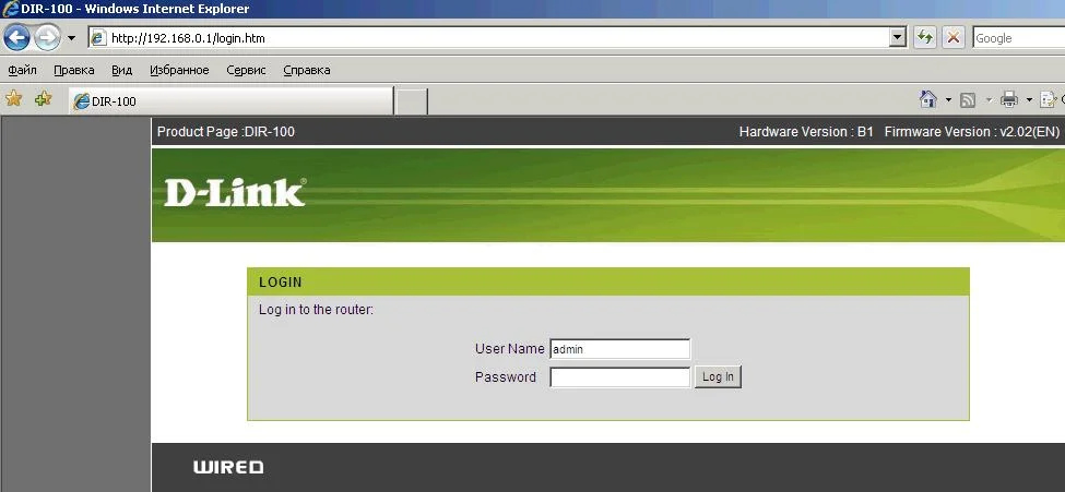 Соответственно поле пароля следует оставить пустым.5. В поле "User Name (Пользователь)" введите «admin» , поле "Password (Пароль)" оставьте пустым и нажмите ОК.