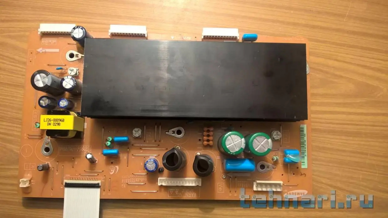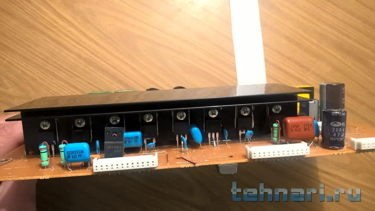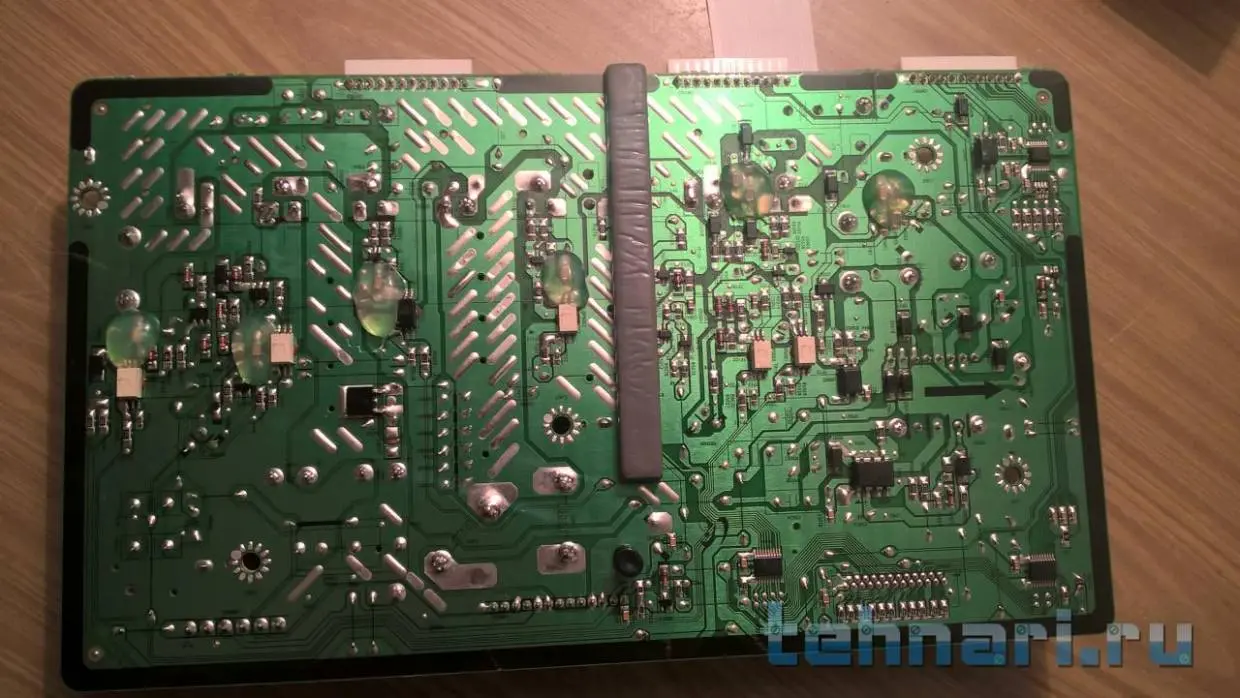 Есть телик жк или плазма забыл . Скорее плазма . При включении в сеть издает звук а на экране ничего , выключаеться с пульта тоже есть звук при включении и выключении . Помоему сгорел экран или что либо на плате . Вот снял на фото плату подсветки . Что следует прежде всего проверить ?