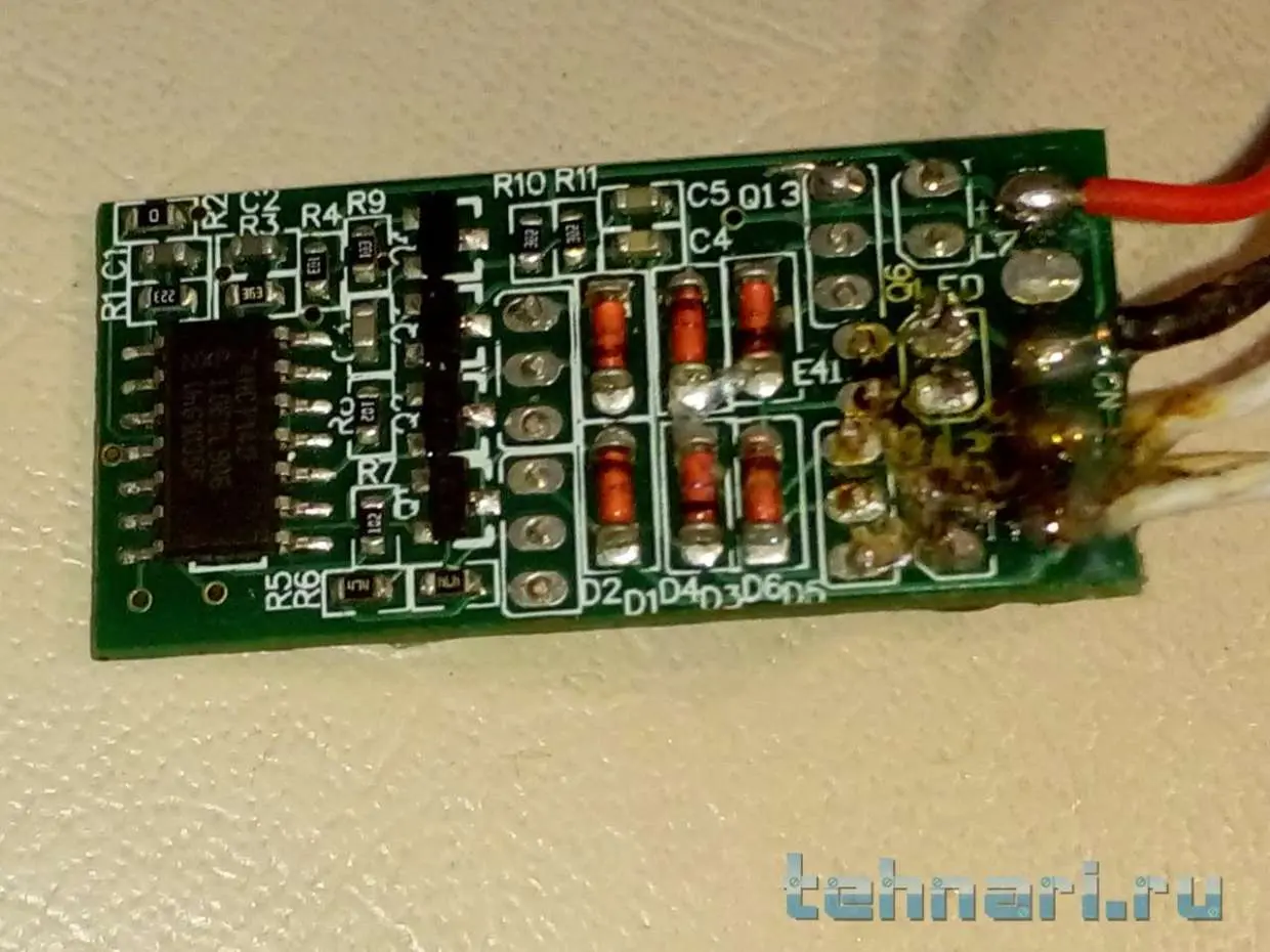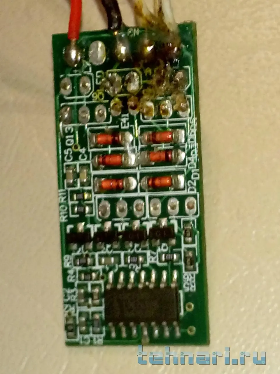 вот сфоткал с разных сторон то что чёрное это клей которым были залиты провода растаял и смешался с канифолью