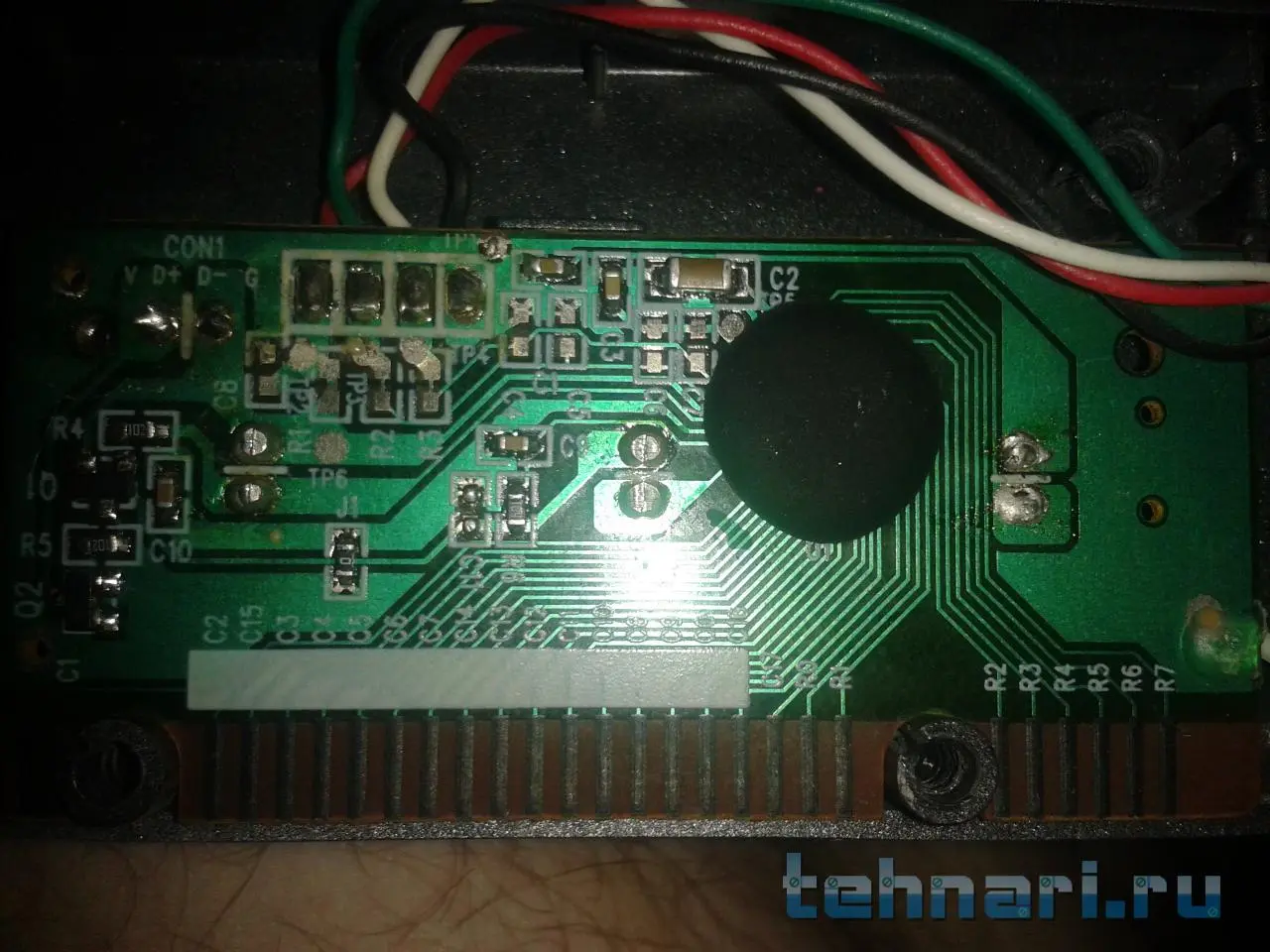 ну вот двумя бедыми проводами видимо была припаена вот к этим разъемам ,и ещё на корпусе самой платы с лева виднеется немного припоя