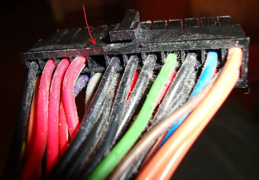 ну от блока питания 24 пиновый штекер в нем в одном гнезде пусто