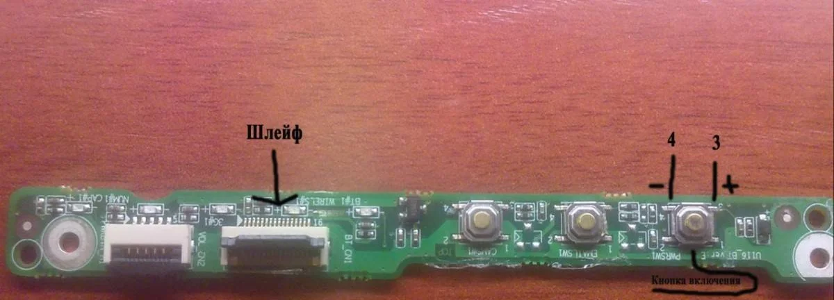 на плату кнопки вкл напряжение есть. А вот на самой кнопки напряжения нет, но звонятся диодом контакты 3 с + на 4 -