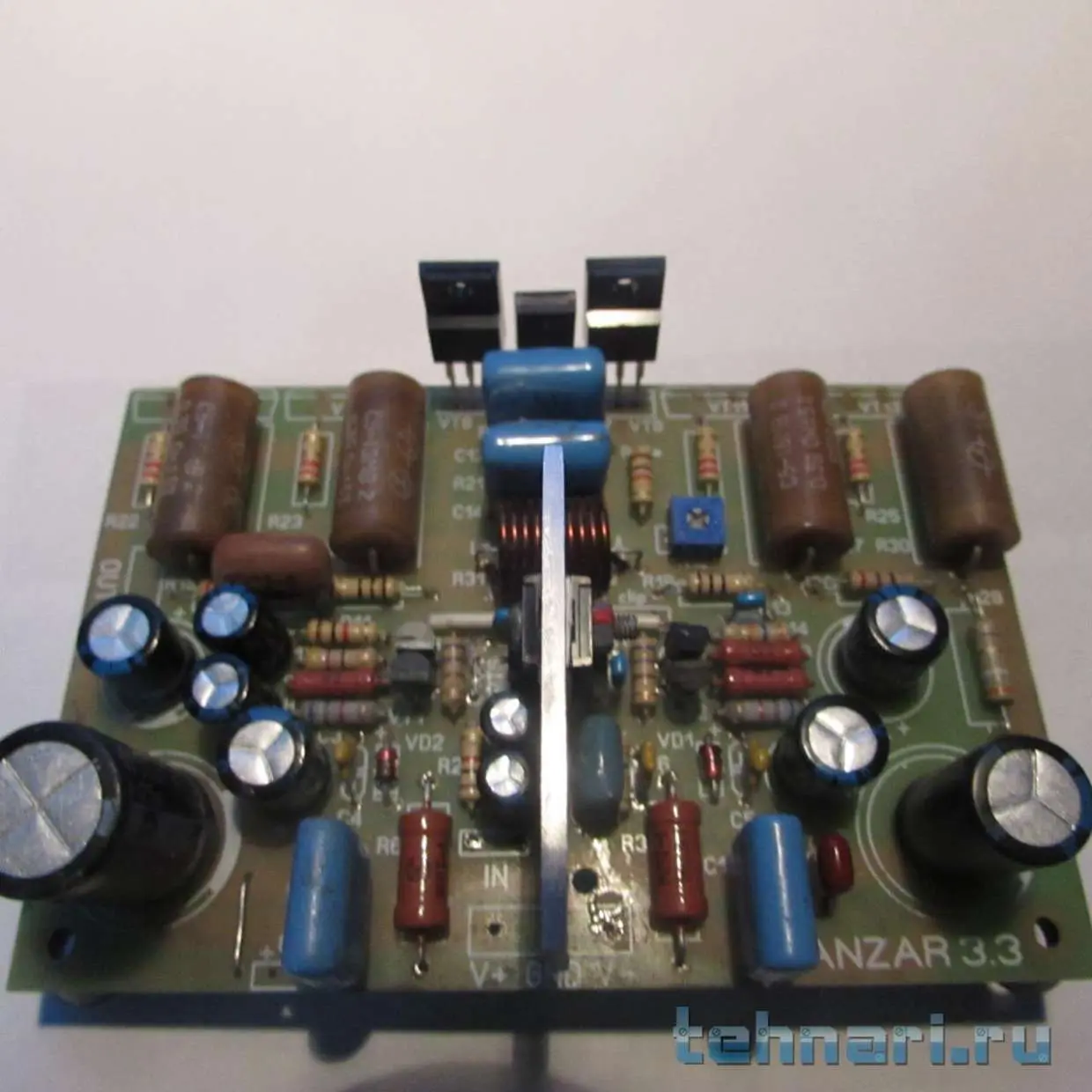 Здравствуйте. Помогите пожалуйста запустить ланзар . Включаю его через лампочку в первичке , а она горит постоянно. Подаю стабилизированное питание на усилитель 35В мощность( трансформатора 120 Вт) , но на входе усилителя оно проседает до 2 вольт ,и плавно растет температура выходных транзисторов.Подключал пока без радиаторов ,хотел проверить плату на работоспособность.Плата взята с Интерлавки. tehno015