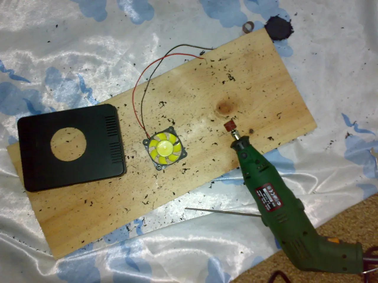 хотел болтиками, но на такой маленький кулер не смотрится, поэтому приклеил