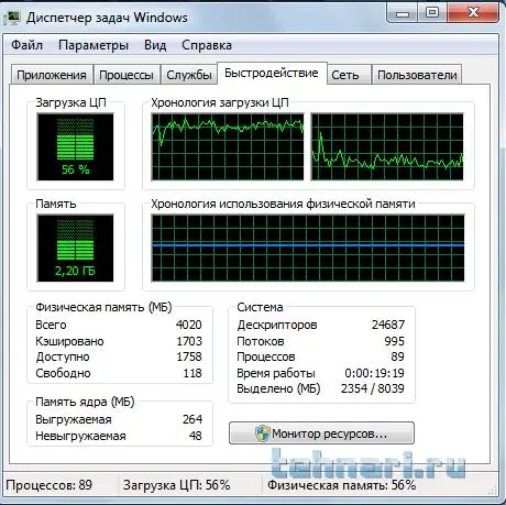 Открой вкладку процессы и посмотри кто там шалит.