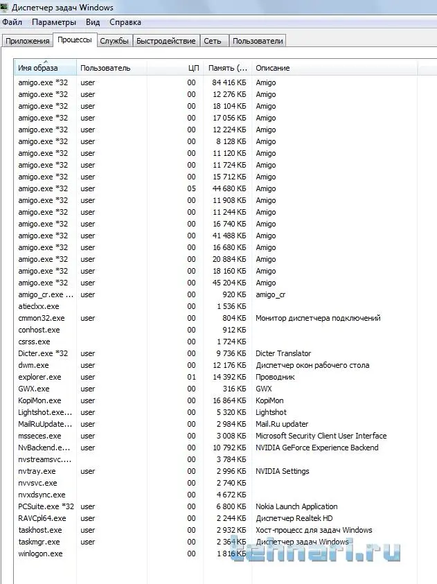 вкладку Процессы покажите, все что есть