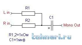 УРА,НАШЕЛ РЕШЕНИЕ!!! DVD плеер с возможностью подключения флешки(USB). AVI-шки точно будет читать. Теперь как аудио два канала слепить в один резисторами? По сколько Ом и как их впаять?