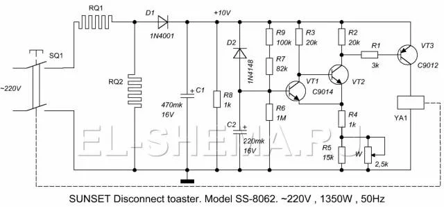 таймер,в который входит элекромагнит,запитан от отвода нагревателя.