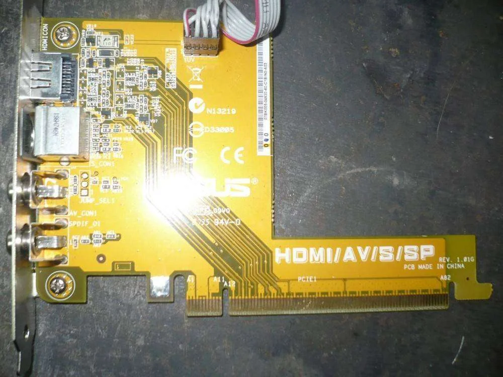 Приволокли PCI-плату, я такую никогда не видел. Производитель ASUS, на ней следующие разъемы: HDMI, S-Video, Video, SPDIF. Конкретной маркировки на плате не нашел, есть надпись крупными буквами: HDMI/AV/S/SP/ Я понял, это все связано с видео, но чего конкретно она умеет делать?