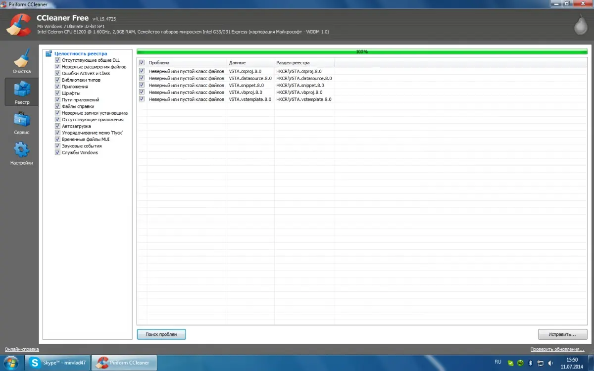 2. Сразу поставил CCleaner и проверил его работу выявились проблемы см вложение.