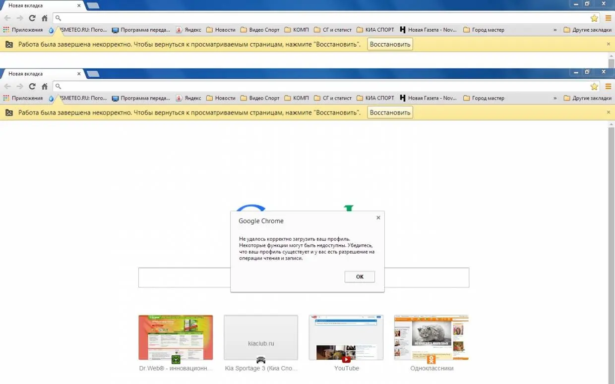 1. После переустановки ХР на 7ку гугл открывается сразу в нескольих окошках внизу, причем правильно открыто только первое левое а при пуске остальных пишется сообщение см вложение. После выключения Гугла а затем повторного включения Гугл не открывается. После перезагрузки процесс повторяется. Закрываю все внизу окошки и работаю только с последним левым. Подскажите как исправить.