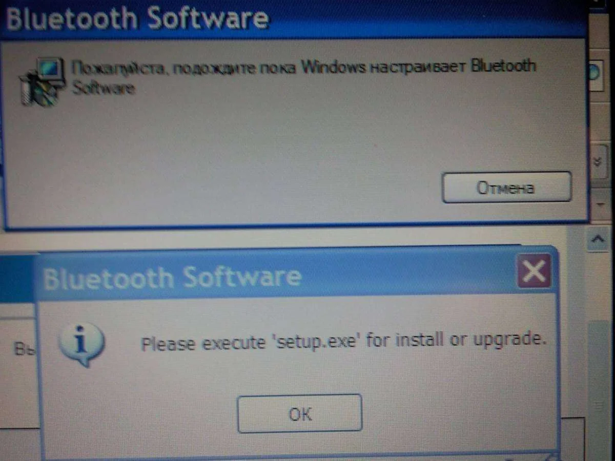 это установка блютус адаптера(модуля)... возможно просто не до конца завершенная установка была - совет, завершите ее до конца...(если не делали до этого ) или если хотите обновить старую программу.