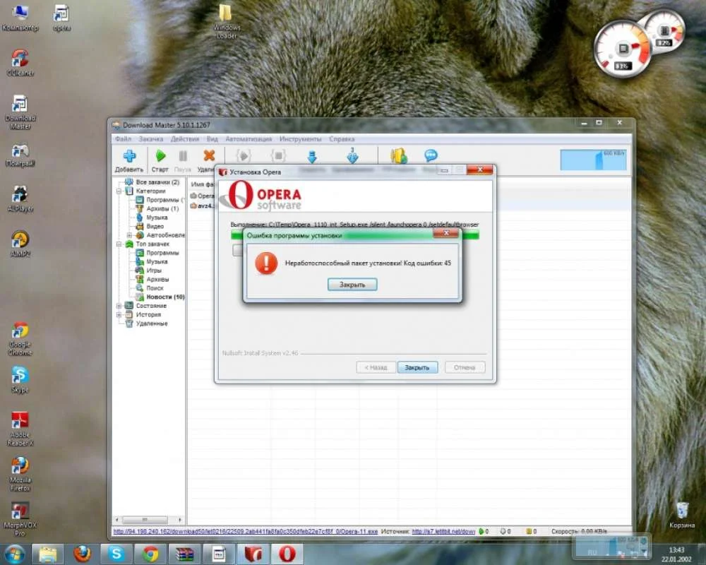 Не устанавливается браузер опера выдает ошибку 45 ! Пытался удалить его и снова установить но не каких успехов , после чего попробывал разархивировать установку программой 7-zip и вставил всё это в первоначальную папку , но при каждом запуске выдает ошибку (скрин 1) после повторного запуска запускается но при каждом переходе на другую страницу выдает ошибку (скрин 2) так же не заходит в контакт не с одного браузера в вожу логин пароль он обнавляет страницу и все тоже самое и все браузеры выдают ошибку с сертификатами !!!