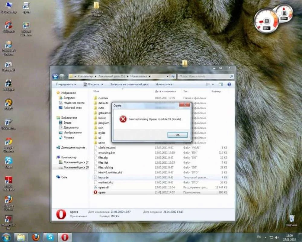 Решается Полной переустановкой оперы и чисткиой leaner