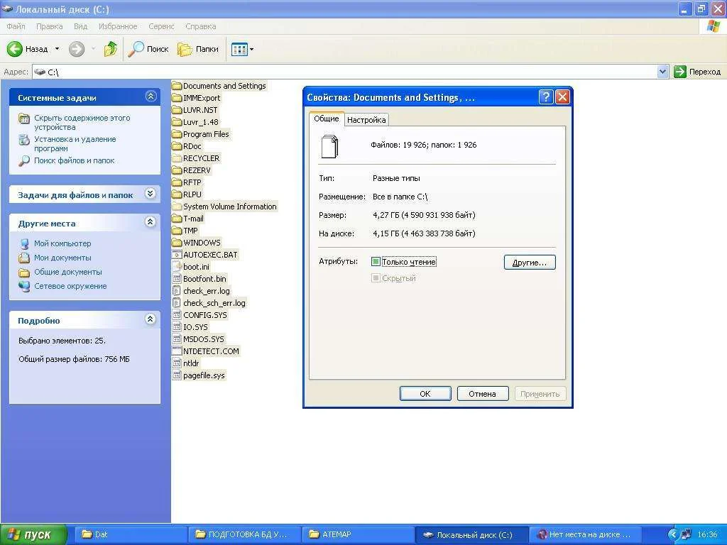 Всем привет. На компьютере 3 локальных диска. Размер системного диска 19,5 Гб. Так на этом диске катастрофически не хватает места. Я открыл скрытые и сестемные файлы и папки. Их общий размер всего 5 Гб. Так мне интересно, где остальные 14,5 Гб ??