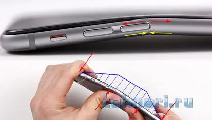 ps. блин не могу найти картинки, но умельцы разбирают 6+ айфон, вставляют металлическую пластину в то место где корпус самый тонкий (район кнопок vol+/-) и устройство становится намного прочнее. Думаю производитель мог это предусмотреть, но к сожалению не сделал этого.