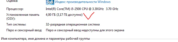 А у вас с 4Гб оперативки комп сколько видит? (ну сколько показывает доступной?)