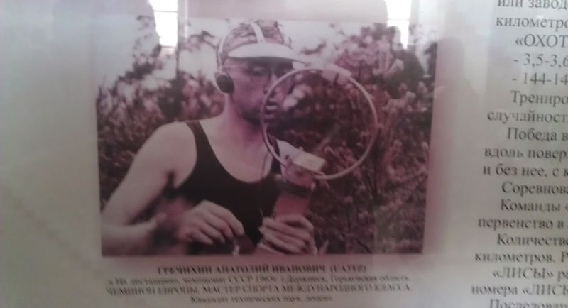 На последок, хочу добавить, что в экспозиции музея есть стенд, посвященный достижениям наших земляков. На этом стенде я обнаружил фотографию своего институтского преподавателя основ радиоэлектроники А.И.Гречихина. Дядечка был (к глубокому сожалению, я недавно узнал, что он умер несколько лет назад) весьма знаменитым в 60.-х годах в "охоте на лис". Вот его фото тех лет: