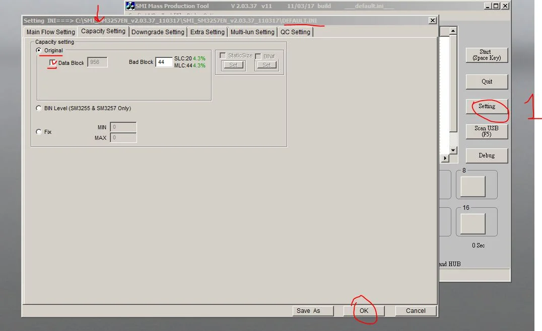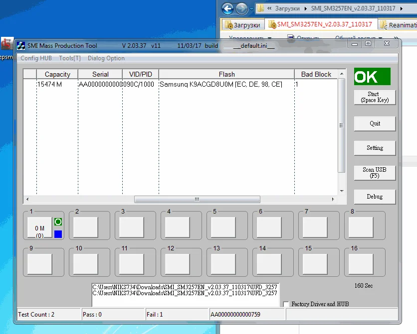 Программы SMI версии 2.03.58 вообще не видят флешку. А вот 2.03.37 - прям на ура. Один бэд бедовый зараза...))