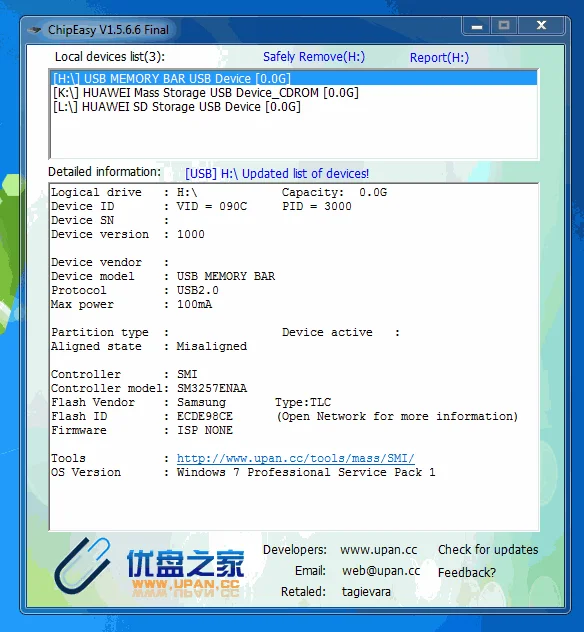 Попробуйте ещё эту утилиту smi. Определяет эту флеш? Более универсальная. Без настроек, scan и т.д. Пароль для конфигурации тот же, если вдруг.