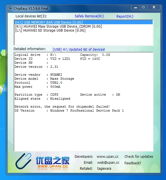 Попробовал форматнуть HP USB Disk Storage FormatTool 2.2.3 . Пишет -нет информации о нем, хотя и опознает....в нуль...