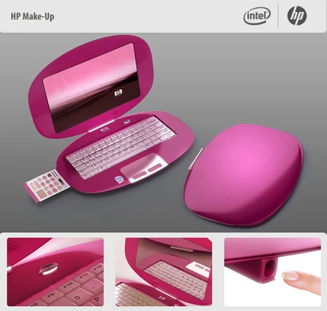 Тема может и для юмора, но все-таки...компания НР подготавливает ряд концептов женских ноутбуков....куча всяких прибамбасов (встроенные весы, косметичка, ноут-хамелеон). В общем и смех, и грех...вот теперь хотелось бы услышать ваше мнение по этому поводу....одну фотку прикреплю, остальные по ссылке - скорость инета маленькая... http://...........ru