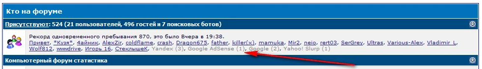 Там же сверху написано: " Присутствуют: ............... 7 поисковых ботов"