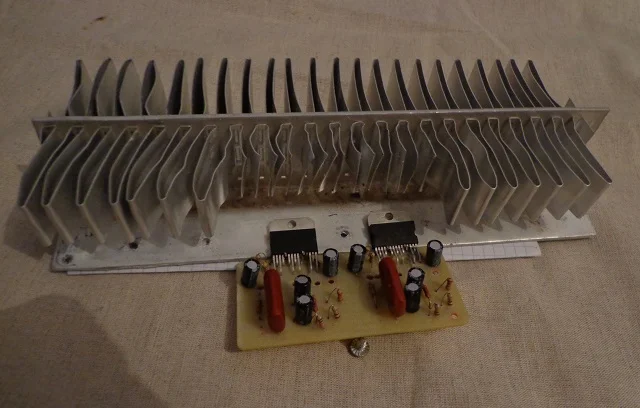 Оставляю только: блок питания(диоды кд202д,трансформатор, конденсаторы), радиатор и сам корпус. Решено было собрать усилитель мощностью 100 ватт на TDA7294. Изготовлю новую переднюю панель.