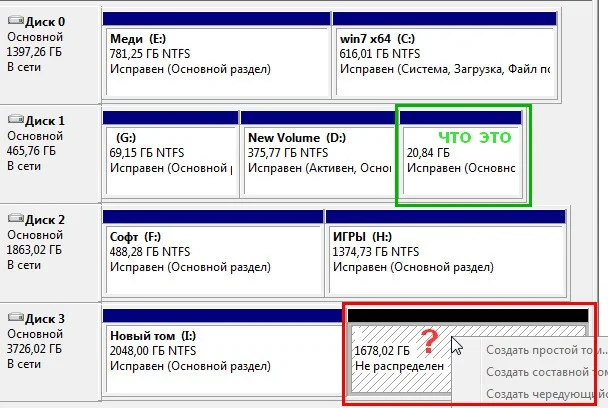 3. Диск в зелёной рамке, в оське не виден - что это за диск, нужен ли он для системы, можно ли эту область слить с другим диском??