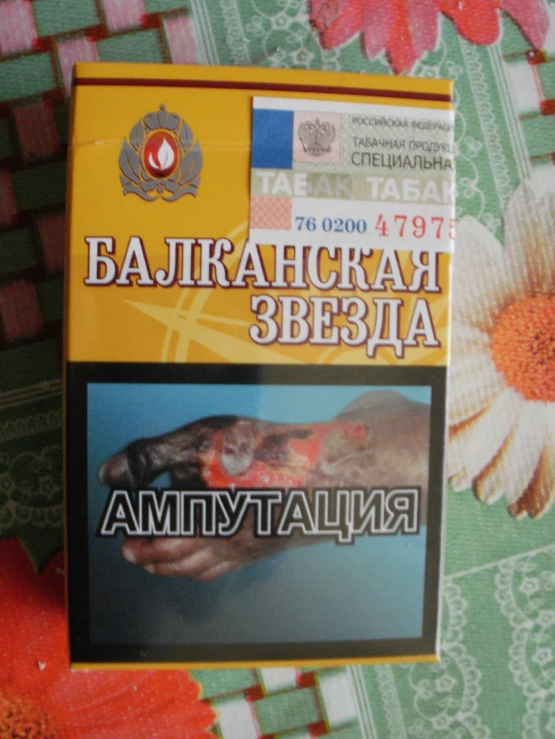 Ваня ты не куришь и не кури, я тебя Христом Богом прошу, я уже попробовал и на всю жизнь. Ваня даже не вздумай !!! ...В РФ с 12 июня запрещается выпуск сигарет в пачках без "страшилок".