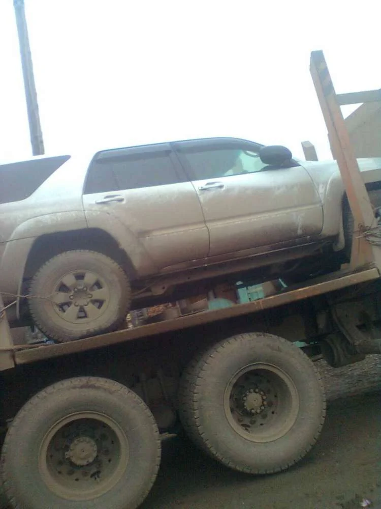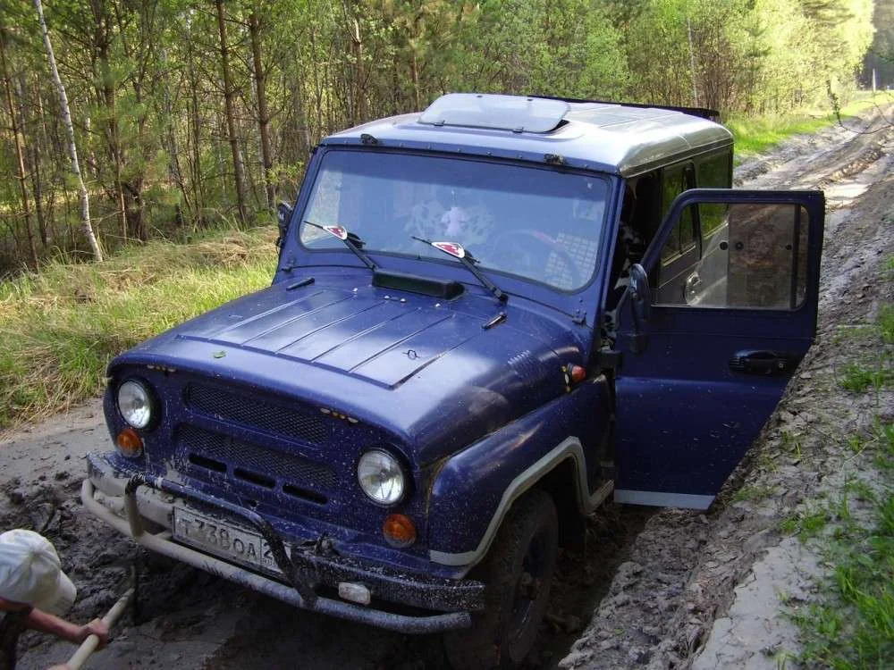 Синий УАЗик - это наш бывший рабочий автомобиль, сейчас он уже списан, бесславный конец...