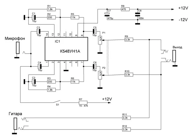 Вот кстати тоже как раз собираю преамп для микрофона . Будет использоваться для записи гитары методом съёма звука микрофоном с гитарного кабинета ( + ламповый усилитель, и т.д.) Делаю по этой схеме. Кстати, нарисовал печатку под него, с размещением гнёзд вход/ выход и переменника громкости на плате .