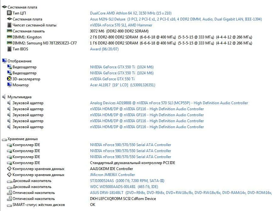 Конфиг на снимке , в июле взял блок питания Блок питания SPI PRO 500 :: FSP GROUP и видеокарту www.EasyCOM.com.ua: Обзор и тестирование видеокарты MSI GeForce GTX 550 Ti CYCLONE II OC , до этого стояла Asus EN8600GTS 256 Mb . В начале следующего года планирую взять материнку (хочу взять эту www.EasyCOM.com.ua: Обзор и тестирование материнской платы ASUS M5A97 EVO на AMD 970) , Phenom 955 или 965 и память .