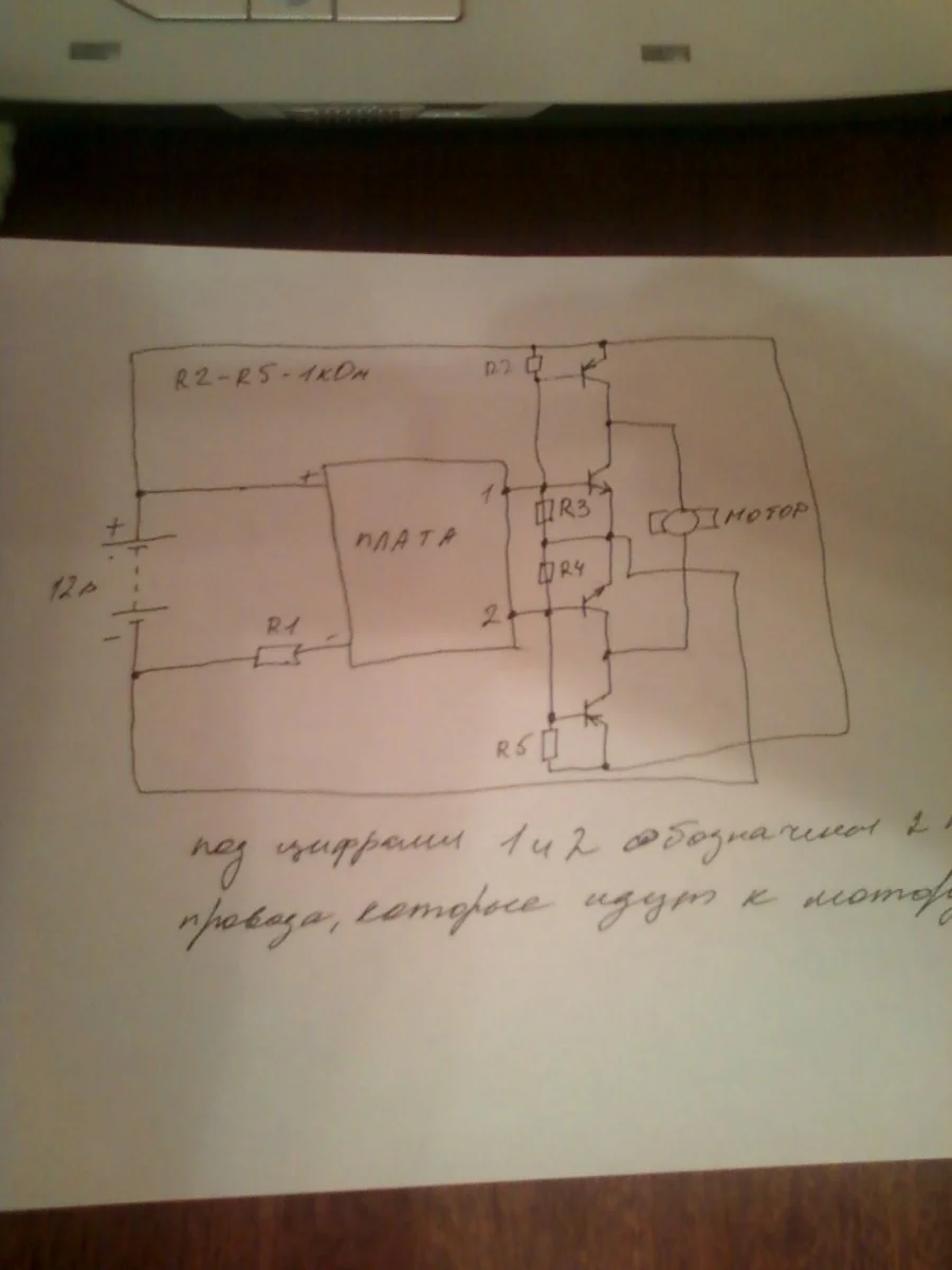 вот получаеться идёт питание 3В от платы, стоит транзисторный ключ, который запускает 12В акуммулятор для мощьного движка?