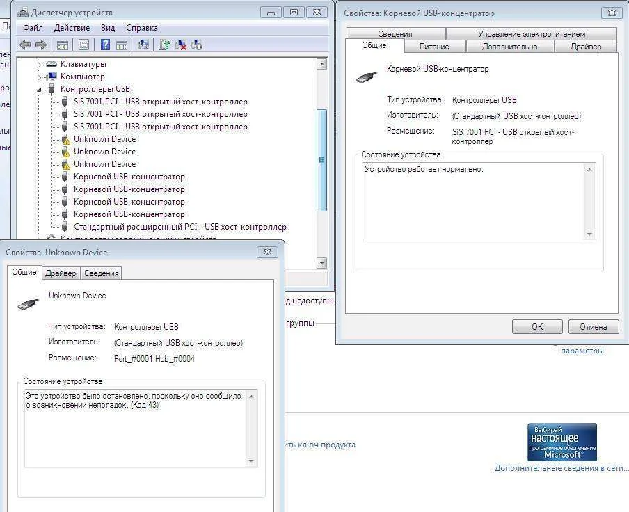 Значит, если все было раньше норм, разные ОС не помогают, то смотрим оборудование. У тебя есть доп. УСБ порты, подключеные к материнке? Если да, попробуй их отключить и включи устройства УСБ в порт материнской платы. И емли можешь, сделай пару фоток внутри компича.