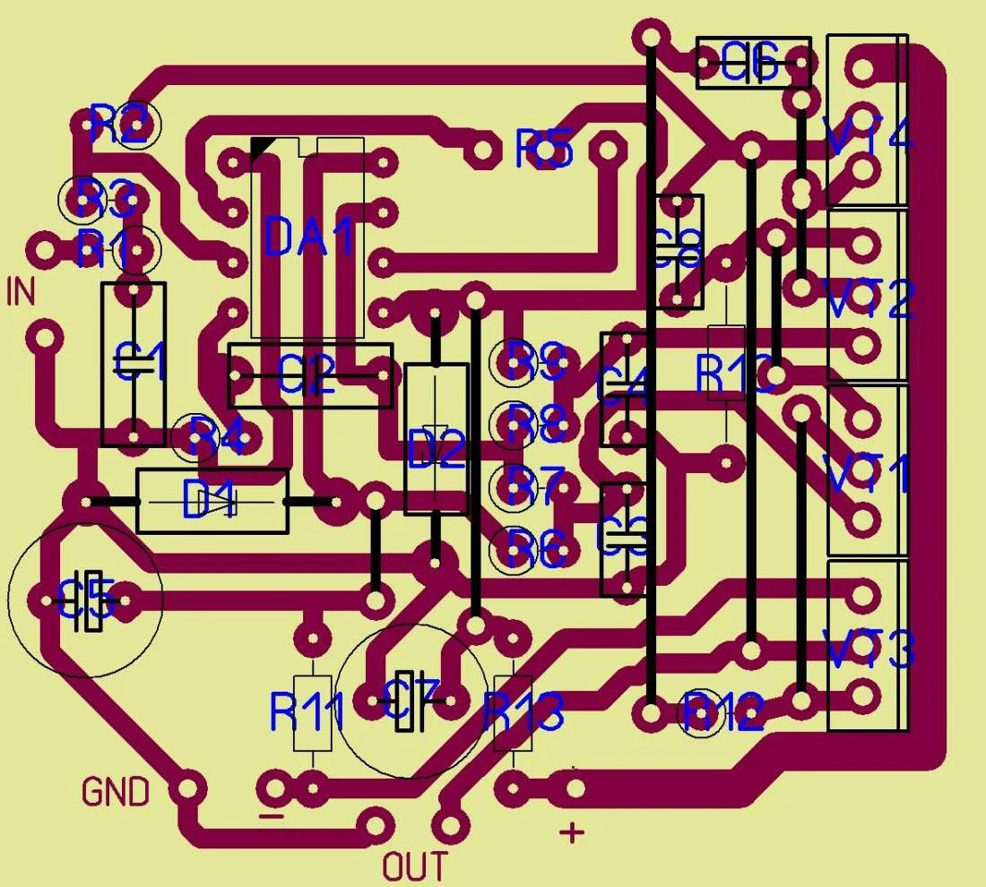 схему уселитиля взял с сайта радио кот и мною была нарисована печатная плата,