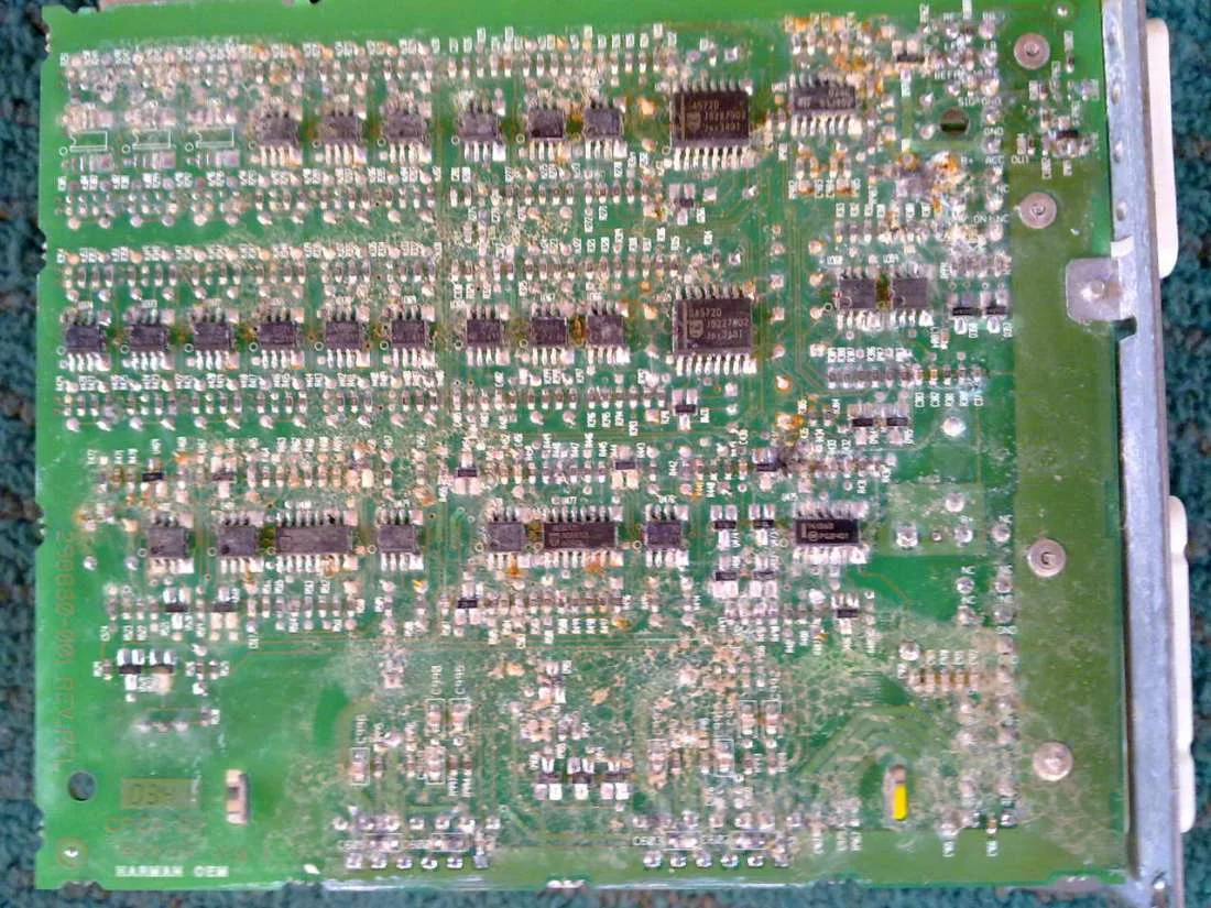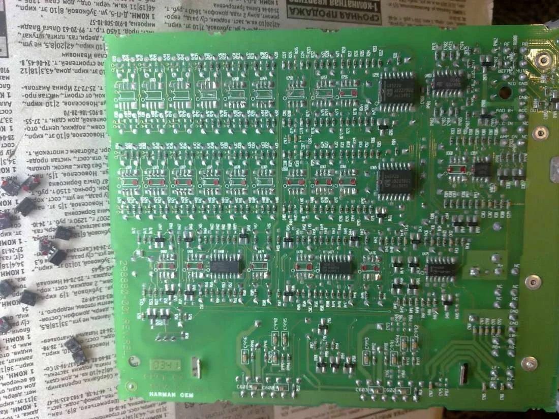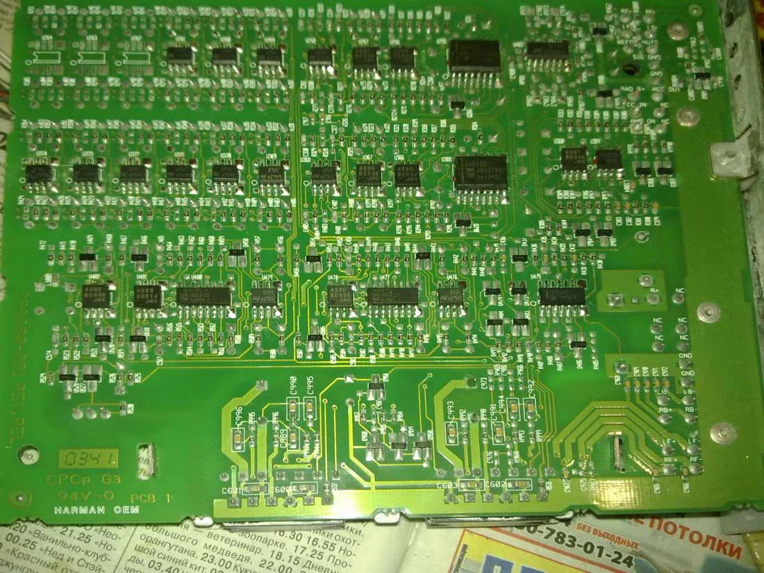 Залезли в лужу по самые уши, УМ находится в багажнике, поэтому промок сильно. Когда звук стал пропадать, было уже поздно: от коррозии выводы микрух разъело. Пришлось все менять. Но оживить удалось пока только выходные микрухи. Может у кого есть схема или подскажите где найти, в инете не нашел.
