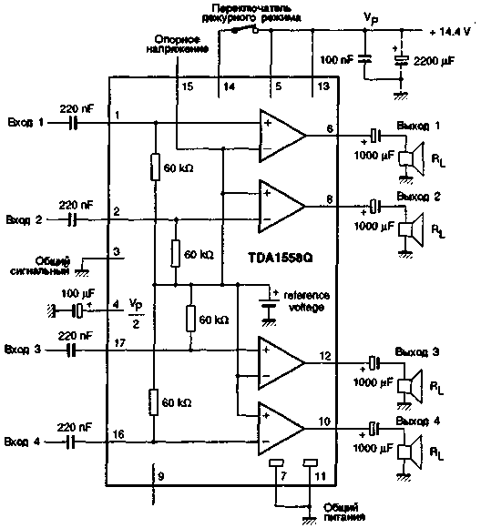 Ты же говоришь схемы понимаешь!слушай а вот на этой схеме с 4 динами......... как подключать музыку.........