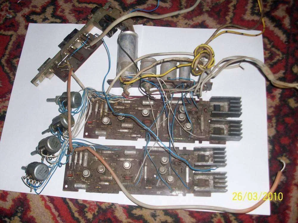 Взял у друга вот этот усилитель от старого магнитафона, он убрал из него питание(он тоже есть), и оторвал один проводок, вот мне надо это провод припоять на свое место и поэтомцу нужна схема, заодно проверить все ли на месте