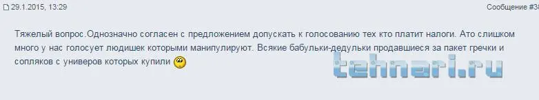 Сначала пенсионеров, потом судимых, потом неплательщиков, злостных алиментщиков и им подобных, потом вовсе придумают как делить на граждан высшей, первой и тому подобных категорий, и не будут допускать на выборы всяческих "низших".